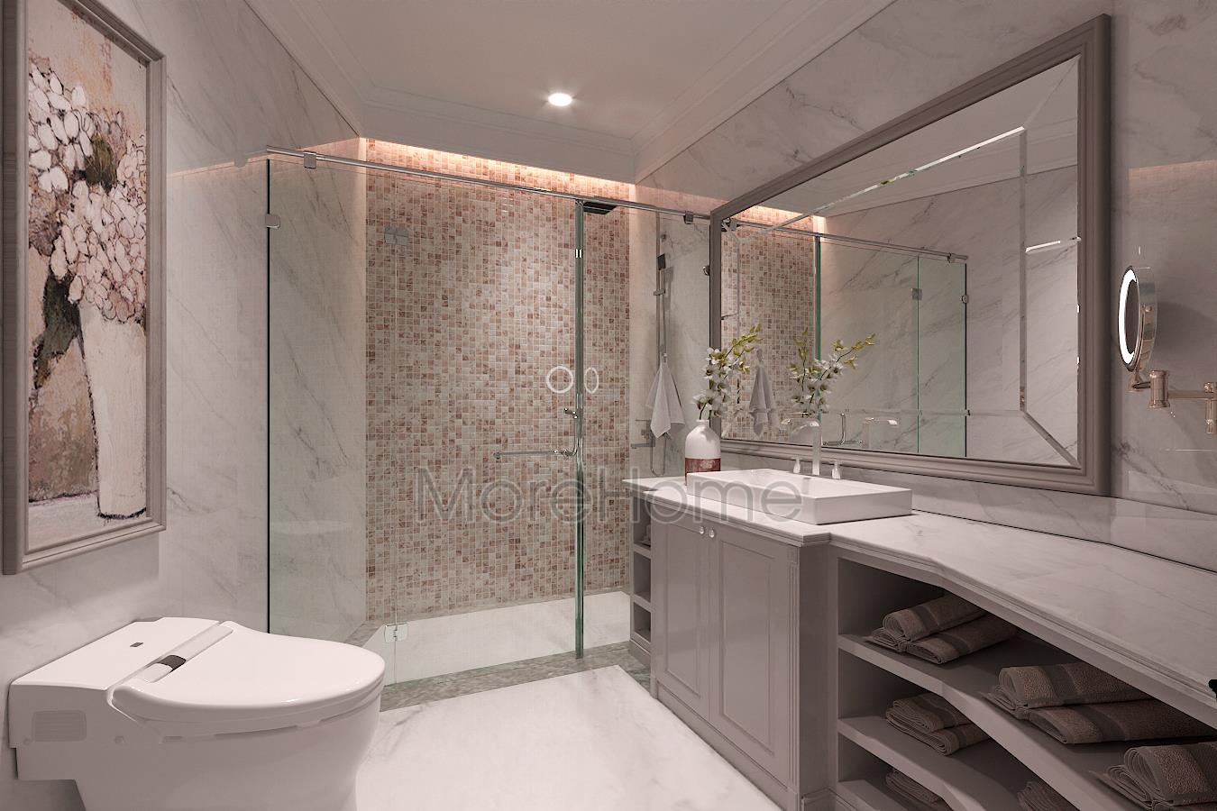 Phòng tắm nhà vệ sinh tại căn hộ cao cấp Penthouse Keangnam được thiết kế vô cùng đẹp và ấn tượng với các sản phẩm thiết bị vệ sinh và sản phẩm nội thất phòng tắm khác như: bồn cầu sứ cao cấp, vách tắm kính cường lực, tranh treo tường trang trí phòng tắm, giá, kệ inox, vòi chậu, vòi tắm hoa sen, phụ kiện kính, bản lề...Morehome không chỉ là đơn vị thiết kế nội thất, thi công nội thất uy tín mà Morehome còn được biết đến là một công ty cung cấp các sản phẩm nội thất phòng tắm đẹp. Liên hệ hotline: 0975438686 khi bạn có nhu cầu.