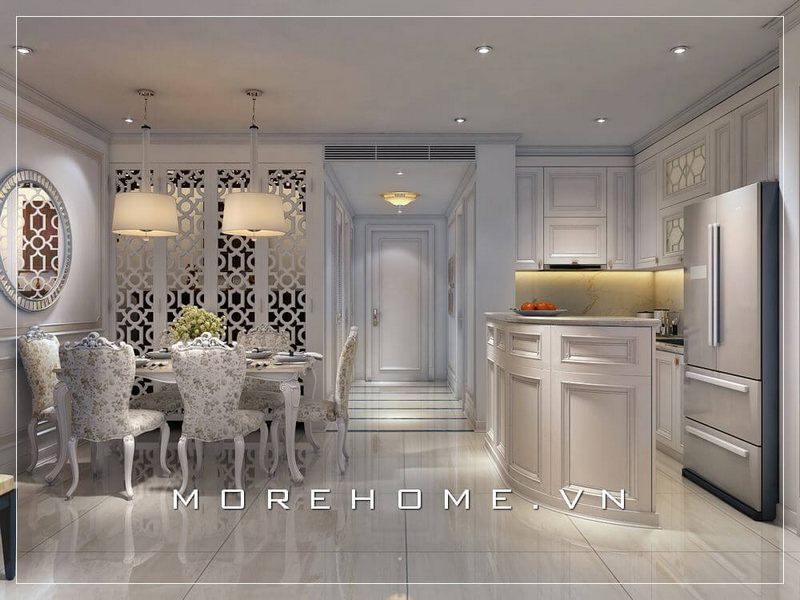 Thiết kế nội thất phòng bếp chung cư phong cách tân cổ điển