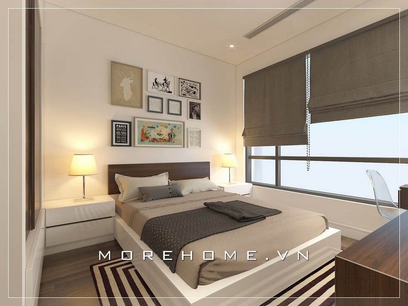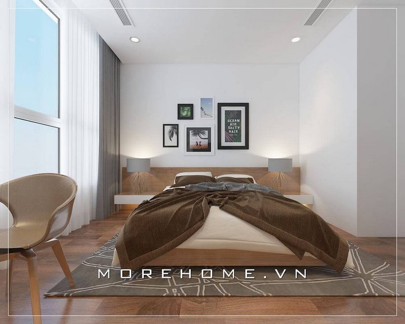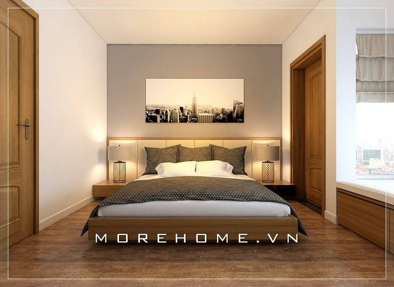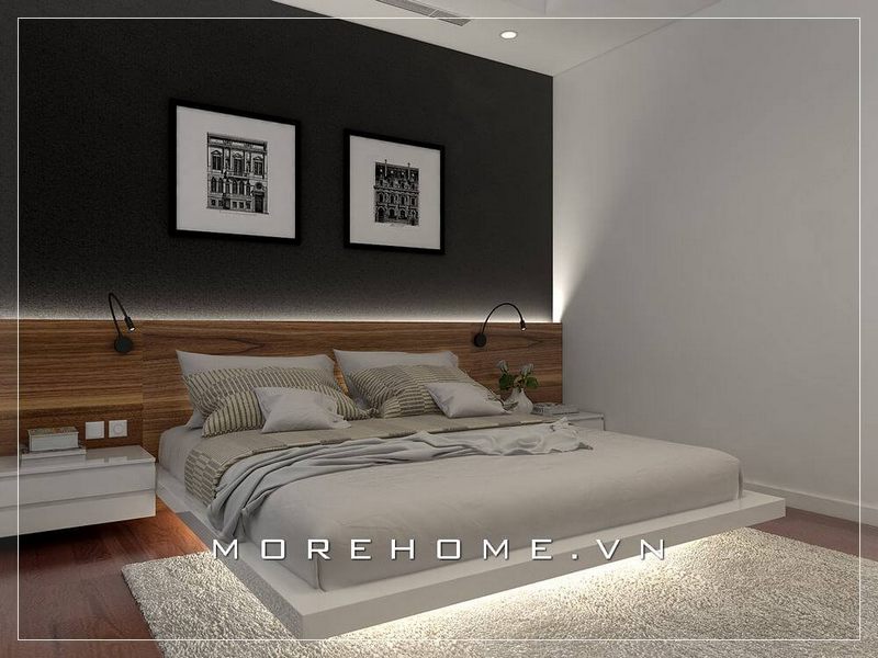 Giường ngủ chung cư hiện đại được thiết kế với chất liệu gỗ công nghiệp An Cường tại điểm nhấn nhẹ nhàng cho không gian nghỉ ngơi của gia chủ