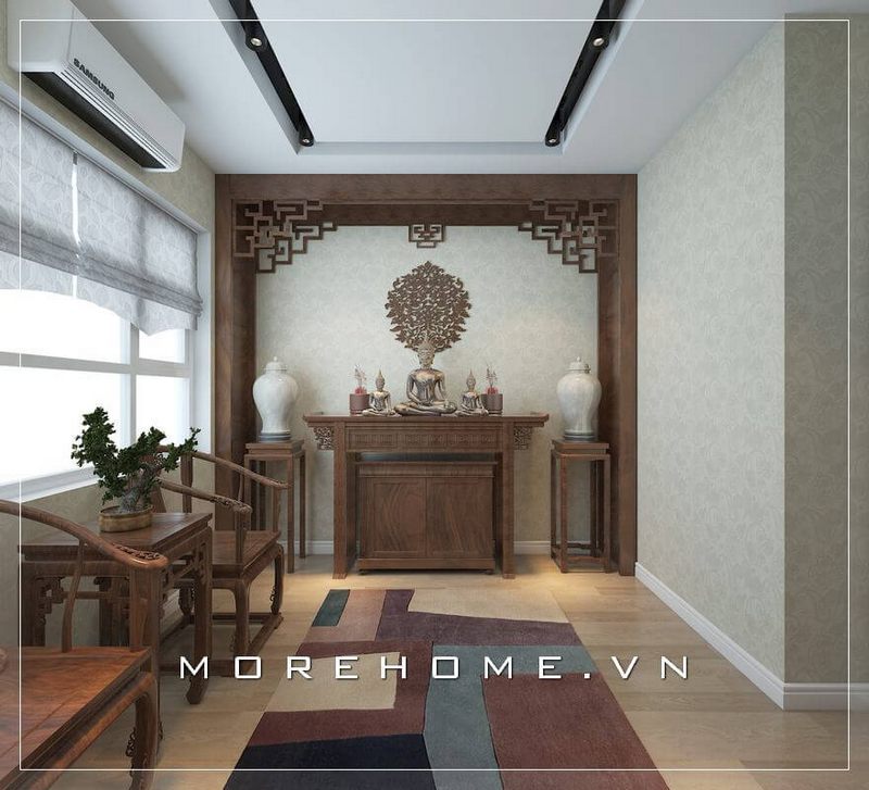Mẫu bàn thờ phật gỗ sồi cao cấp cho nhà phố hiện đại