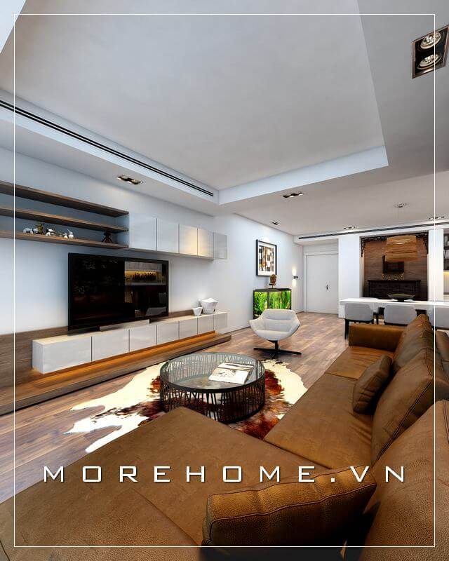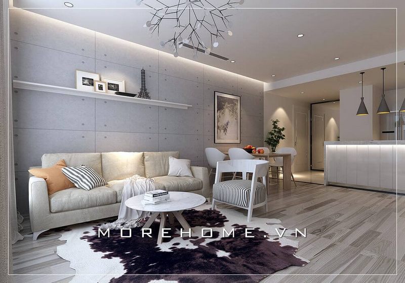 Mẫu thiết kế nội thất phòng khách của căn hộ hiện đại được thiết kế để phù hợp với những gia chủ yêu thích sự đơn giản và mong muốn không gian sống của mình là thoáng đãng.