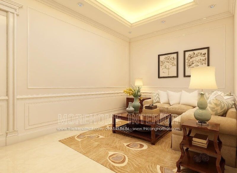 Trang trí nội thất phòng khách chung cư cao cấp phong cách tân cổ điển sang trọng thể hiện cá tính đẳng cấp của gia chủ