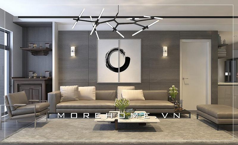 Gỗ ốp tường màu ghi cùng đường vân độc đáo tạo vẻ đẹp sang trọng cuốn hút trong phòng khách hiện đại.