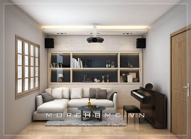 Toàn bộ nội thất phòng khách gỗ công nghiệp được thiết kế đơn giản, tập trung vào công năng sử dụng, tạo ra cho gia chủ một không gian sống đầy hứng khởi và tràn đầy sự mới lạ.